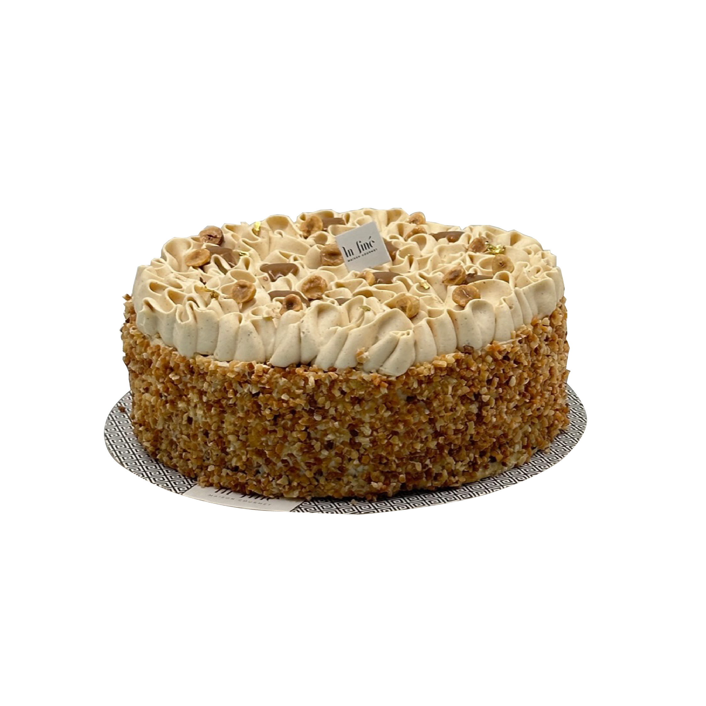 L'entremets Praliné Noisette, destiné à 8 à 10 personnes, est une ode à la noisette et au praliné, offrant une symphonie de textures et de saveurs gourmandes. Il commence par un biscuit nature léger en base, apportant une touche moelleuse, surmonté d'un croustillant praliné noisette au chocolat au lait qui offre une texture croquante et fondante. La mousseline praliné noisette, riche et onctueuse, ajoute une douceur enveloppante, tandis qu'une ganache montée praliné vient couronner le tout avec légèreté. Cet entremets est un véritable régal pour les amateurs de noisette, combinant le fondant, le croquant et la douceur du praliné dans chaque bouchée
